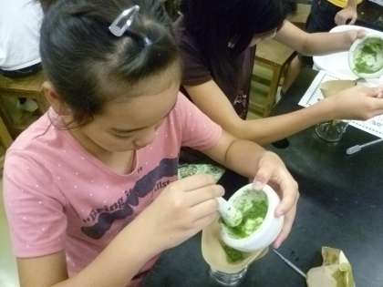 すりつぶして実験のために準備します。