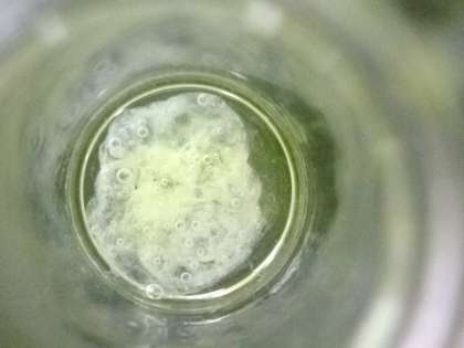 エタノールを入れるとふわっと、DNAのかたまりが出てきます。