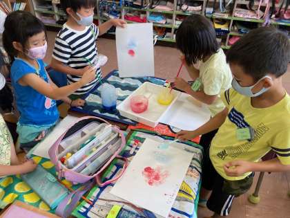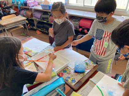 「見て見て!きれいなのができたよー。」
