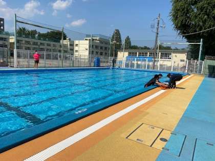 6/9 水泳救急体制訓練 公開日 2021/06/11 更新日 2021/06/11 副校長より 水泳の授業に向けて、先生たちで指導の流れや緊急時の対応等について研修を行いました。 今年度はコロナ対策のために、活動できる時間も少ないですが、楽しく安全な学習になるよう準備を進めています。