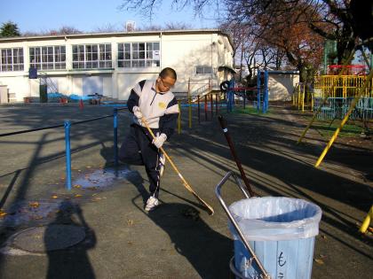 11/28 職業体験 公開日 2008/11/28 更新日 2008/11/28 今日のできごと 11月27日28日の2日間、用賀中学校の2年生2名が職業体験として、用賀小学校の主事さんの仕事を体験しました。京西小学校と用賀小学校出身の先輩です。昨日と今日の午前中は雨で校舎内の仕事をしました。今日の午後は雨も上がり、校庭の落ち葉はきをしてくれました。おかげで校庭もきれいになりました。やっぱり中学生の力は凄い!中学生お疲れ様でした。