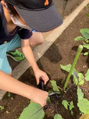 6/18 2年 なすの収穫です 公開日 2021/06/21 更新日 2021/06/21 今日のできごと とんどん大きくなるなすちゃんたち。 少しずつ収穫しています。 子供たちも毎日楽しみに観察しています。 枝豆もだいぶできてきました。 もう少し膨らむのを待ちます。 楽しみですね!