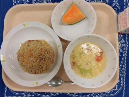 6/22 本日の給食 公開日 2021/06/22 更新日 2021/06/22 給食 〜今日の献立〜 焼きカレーパン 牛乳 チーズのふわふわスープ くだもの(メロン) 〜給食メモ〜 今日のくだものは、今が旬の「メロン」です。そこで今日は、「メロン」のクイズを出したいと思います。日本で一番メロンを作っているのは、どこでしょうか? 1. 熊本県 2. 茨城県 3. 北海道 ※クイズのこたえは、「食材がとれたところ…」の最後にのせています。 食材がとれたところ・・・ 閉じる 食材がとれたところ… 鶏卵…青森県 豚肉…青森県 鶏肉…青森県 しょうが…高知県 たまねぎ…愛知県 にんじん…千葉県 トマト…岩手県 レタス…長野県 メロン…茨城県 クイズのこたえは、2の「茨城県」です。今日の給食のメロンも、茨城県で作られたものです。メロンには、疲れをとってくれたり、夏バテを予防してくれる栄養素がたくさん入っています。残さず食べましょう。