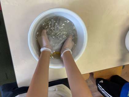 6/25 6年 家庭科「夏をすずしくさわやかに」 公開日 2021/06/25 更新日 2021/06/25 学年 6年生の家庭科では、衣服の手入れについて学習しています。 本日は、手洗いで洗濯をしました。 もみ洗いやつまみ洗いをしてきれいに汚れを落としました。