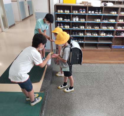 6/25 運営代表委員会 公開日 2021/06/25 更新日 2021/06/25 委員会・クラブ活動 運営代表委員会では、学校のためにできる活動として、昨年に引き続き消毒活動を行いました。朝、玄関に立ち、あいさつをして消毒を呼びかけました。わずかな時間ではありますが、みんなのために仕事ができて達成感を得られました。
