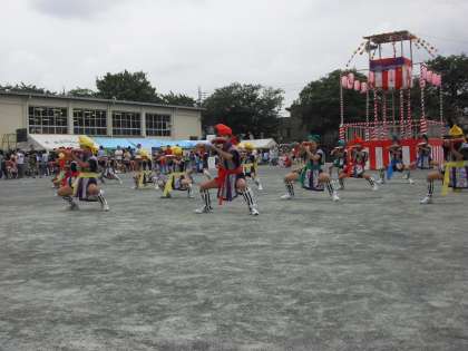 昨日は荒天のため残念ながら中止となってしまいましたが、本日は何とか1時間前倒しという形で開催をすることができました。準備は9時頃から、やぐらの会、町会、おやじの会の方々、そして本校の教職員を中心に手際よく進められました。本当にたくさんの方々の熱意が結晶して開かれる町のお祭りだと実感しました。