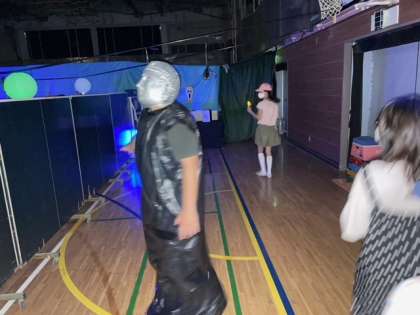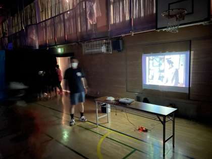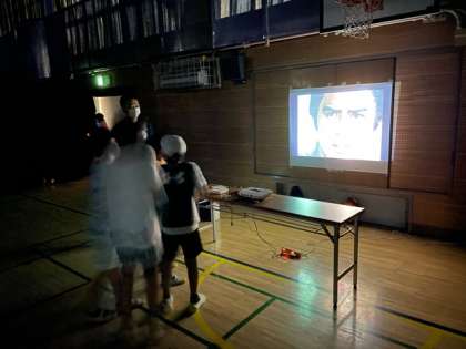 体育館を暗くして、肝試し!? すみません。お化けは誰かわかりません。