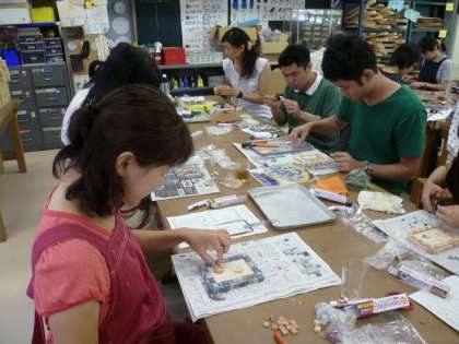 はがきより少し大きな小品ですが、ずっしりとした重みと重厚な立体感が在り、図工の先生方が熱心に取り組んでいました。