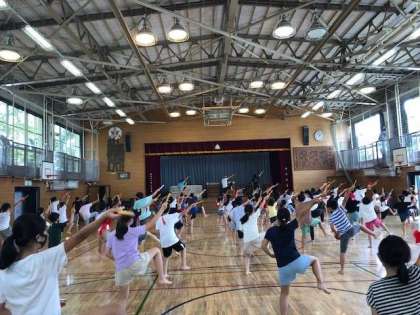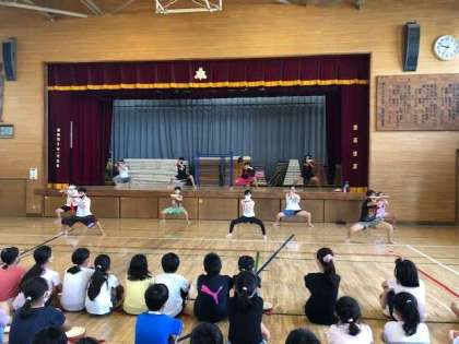 8/28 エイサーチーム練習「ミルクムナリ」 公開日 2021/08/30 更新日 2021/08/30 学年 後半となった今週、長い曲の練習が始まりました。今回のミルクムナリは、唯一真顔での演舞です。振り付けは繰り返しの部分が多いのですが、一番大変なことは腰を低く落とすこと、そして足を上げ続けること。 簡単なようでキープし続けることがとても大変ですが、暑い中精一杯取り組んでいました。