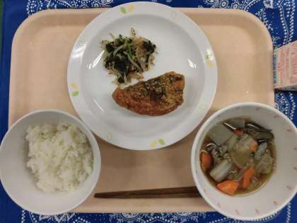 9/7 本日の給食 公開日 2021/09/07 更新日 2021/09/07 給食 〜今日の献立〜 ごはん 牛乳 さばのごま揚げ ほうれん草の乾物和え 根菜汁 〜給食メモ〜 今日は、さばのごま揚げに使った「さば」のクイズを出したいと思います。「さば」は、「青魚」と呼ばれますが、同じ仲間はどの魚でしょう? 1. さけ 2. さんま 3. あんこう ※クイズのこたえは、「食材がとれたところ…」の最後にのせています。 食材がとれたところ・・・ 閉じる 食材がとれたところ… 米…埼玉県 さば…ノルウェー 鶏肉…岩手県 にんにく…青森県 しょうが…高知県 ほうれん草…栃木県 もやし…栃木県 れんこん…茨城県 ごぼう…群馬県 にんじん…北海道 だいこん…北海道 白菜…長野県 ねぎ…青森県 クイズのこたえは、2の「さんま」です。青魚は、体が青みがかっている魚で、一般的によく食べられる、さば、いわし、さんまなどの魚を指します。青魚には、記憶力をよくする「DHA」という栄養素が入っています。残さず食べましょう。