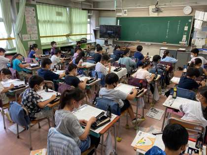 9/14 3年 書写 公開日 2021/09/14 更新日 2021/09/14 学年 通常登校が始まり、3年生の書写も再開しました。 2学期はじめの書写の時間は、固形の墨をする活動を行いました。 自分がすった墨で文字を書くと思ったよりうすかったり、量が少なくて書きづらかったりしていつもの墨汁との違いが見つかりました。 楽しみながら活動しました。