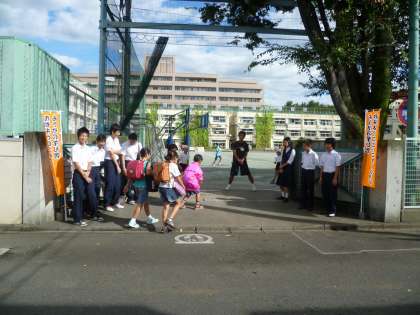 2学期の「おはコミ」が始まりました。先生方は7時50分には分担場所に立って「おはようございます」と声をかけています。
