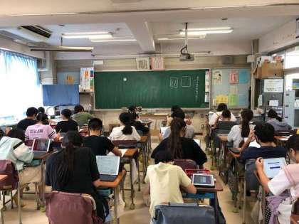 国語で学んだ熟語の成り立ち、二字熟語や三字熟語、四字熟語などを例に学びました。成り立ちが分かった後は、「自分を表す四字熟語」をカードに書いています。