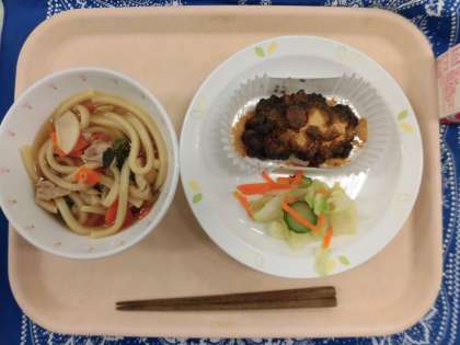 9/24 本日の給食 公開日 2021/09/27 更新日 2021/09/27 給食 〜今日の献立〜 煮込みうどん 牛乳 即席漬け おはぎ 〜給食メモ〜 9月19日から9月25日までお彼岸です。お彼岸にはお供え物としておはぎを作ります。今日のおはぎを作るときに使った食べものは、次のうちのどれでしょうか? 1.うずら豆 2.あずき 3.ひよこ豆 ※クイズのこたえは、「食材がとれたところ…」の最後にのせています。 食材がとれたところ・・・ 閉じる 食材がとれたところ… 小豆…北海道 鶏肉…岩手県 こまつな…東京都 にんじん…北海道 ねぎ…青森県 キャベツ…群馬県 きゅうり…秋田県 しょうが…高知県 クイズのこたえは、2の「あずき」です。あずきには、おなかの中をきれいにしてくれる食物繊維がたくさん入っています。今日の給食のおはぎは、調理員さんがひとつずつ手作りしてくれました。残さず食べましょう。