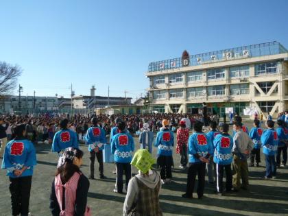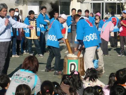 12/6 もちつき大会 その1 公開日 2008/12/06 更新日 2008/12/06 特色ある活動・取り組み 雲ひとつないいいお天気のもと、もちつき大会が開催されました。7:30には、ボイラーが準備され、湯気がもくもく上がり、気分も盛り上がります。 はじめの会で、副実行委員長の柳田文雄さんから、37年前に始まり、おもちのできるまでを紹介したのが始まりということを教えていただきました。今では、9臼も出て、約150名もの、地域や保護者の方々のご協力のもと、盛大に行うことができました。