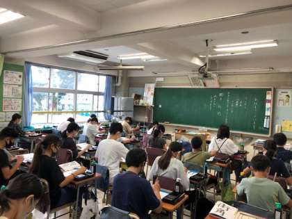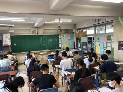 久しぶりの土曜授業、書写を行いました。文字の組み立て、とりわけ今回は「街」のパーツごとの大きさや形を意識しました。