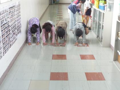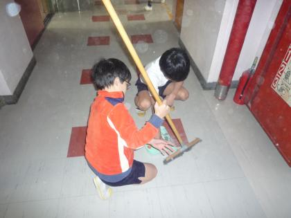 早速お昼の清掃の時間に見て回りましたが、砂ほこりがとっても多くて大変そうでしたがていねいにきれいに掃除にはげんでいました。