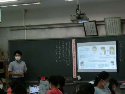 10月14日(木)5校時に道徳の研究授業が行われました。 公正・公平について考える授業です。。河内先生と4年4組の子供たちは、テキストマイニングを使って、感じたことをiPadに入力したり、教科書を読んで、登場人物たちの気持ちを考えたりしました。自分の考えをグループでまとめて発表し、考えを深めることができました。