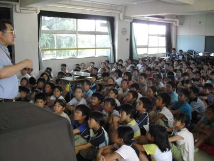 今日は、5年生の食育授業がありました。特別講師として、東京農業大学短期大学部教授の古庄 律先生と学生さんをお招きしての授業です。