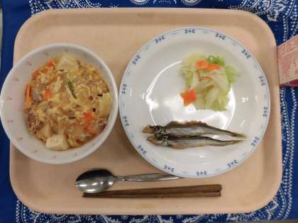 10/20 本日の給食 公開日 2021/10/20 更新日 2021/10/20 給食 〜今日の献立〜 クッパ 牛乳 焼きししゃも 塩だれキャベツのサラダ 〜給食メモ〜 今日は、「ししゃも」のクイズを出したいと思います。ししゃもには、どのくらいカルシウムが入っているでしょうか? 1.牛乳の半分 2.牛乳と同じ 3.牛乳の3倍 ※クイズのこたえは、「食材がとれたところ…」の最後にのせています。 食材がとれたところ・・・ 閉じる 食材がとれたところ… 米…埼玉県 豚肉…神奈川県 鶏卵…青森県 にんにく…青森県 しょうが…高知県 たまねぎ…北海道 にんじん…北海道 ねぎ…青森県 万能ねぎ…福岡県 キャベツ…群馬県 クイズのこたえは、3の「牛乳の3倍」です。ししゃもは、丸ごと骨まで食べることができるので、カルシウムをたくさんとることができます。小学生は骨が成長する時期なので、カルシウムをきちんととることが大切です。小魚や牛乳、チーズなどを上手に組み合わせて、カルシウムをとるように心がけましょう。