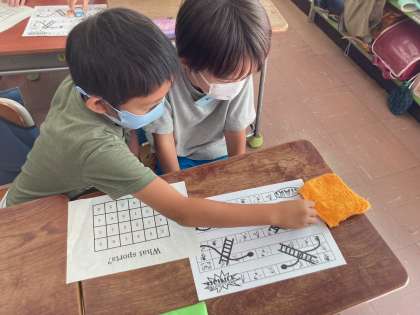 10/14_2年 ALT 公開日 2021/10/26 更新日 2021/10/26 今日のできごと 2学期初の英語の授業がありました。 今回のテーマはスポーツ。 テニス、ベースボール、サッカー、バドミントン、スイミング、、、馴染みのあるスポーツばかりでしたが、クリケットを初めて知ったという子が多かったです。 スポーツすごろくも盛り上がりました。