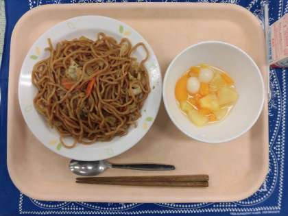 10/28 本日の給食 公開日 2021/10/28 更新日 2021/10/28 給食 〜今日の献立〜 ソース焼きそば 牛乳 フルーツ白玉 〜給食メモ〜 今日は、「ソース焼きそば」のクイズを出したいと思います。給食の焼きそばは、麺にあることをしてから、他の材料と炒めて作ります。さて、あることとは次のうちのどれでしょうか? 1. 蒸す 2. 炒める 3. 揚げる ※クイズのこたえは、「食材がとれたところ…」の最後にのせています。 食材がとれたところ・・・ 閉じる 食材がとれたところ… 豚肉…神奈川県 たまねぎ…北海道 にんじん…北海道 キャベツ…群馬県 もやし…群馬県 クイズのこたえは、3の「揚げる」です。給食の焼きそばは、まず、麺を揚げてから、他の材料と炒めて作ります。麺を先に揚げておくことで、べたつかないおいしい焼きそばを作ることができます。調理員さんは、みなさんにおいしい給食を食べてもらいたいという気持ちで、毎日工夫して給食を作ってくれています。残さず食べましょう。