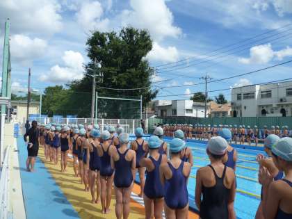 9/16 今年の水泳最終日 公開日 2011/09/16 更新日 2011/09/16 校長室より 用賀小学校のプールは今日で終了です。 5年生がミニ記録会をしてプール納めをしてくれましたが、どの学年の子どもたちもずいぶんと進級して嬉しそうでした。 真夏のような暑さが続きますが、夏雲の向こうに秋のすじ雲が見えはじめました。