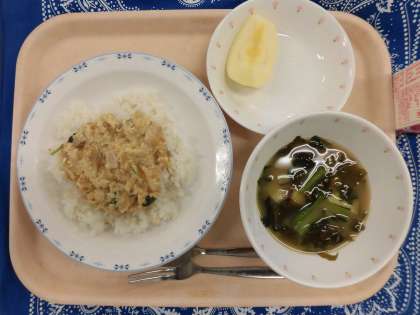 11/5 本日の給食 公開日 2021/11/05 更新日 2021/11/05 給食 〜今日の献立〜 親子丼 牛乳 さつまいものみそ汁 くだもの(りんご) 〜給食メモ〜 今日は、今が旬の「さつまいも」をみそ汁の具にしました。そこで今日は、「さつまいも」のクイズを出したいと思います。私たちが食べているのは、さつまいものどの部分でしょうか? 1. 実 2. 茎 3. 根っこ ※クイズのこたえは、「食材がとれたところ…」の最後にのせています。 食材がとれたところ・・・ 閉じる 食材がとれたところ… 米…埼玉県 卵…青森県 鶏肉…青森県 こまつな…東京都 たまねぎ…北海道 みつば…埼玉県 さつまいも…茨城県 りんご…青森県 クイズのこたえは、3の「根っこ」です。芋には、さつまいものように根っこの部分を食べるものや、じゃがいものように茎の部分を食べるものがあります。さつまいもには、かぜを予防してくれるビタミンCや、おなかの中をきれいにしてくれる食物繊維がたくさん入っています。残さず食べましょう。