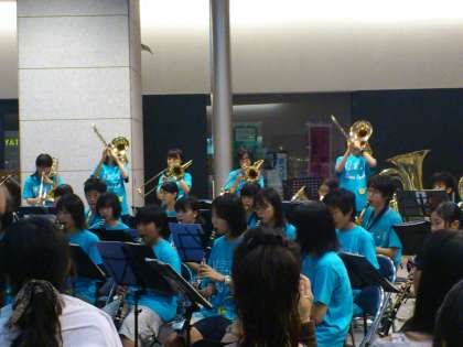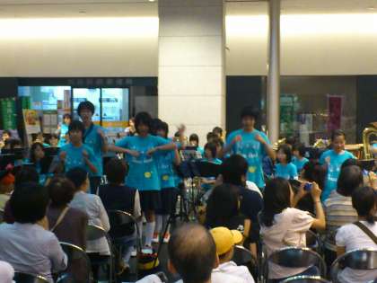 用賀町会の主催で、用賀の駅ビルにて、青空コンサートが開催されました。用賀中学校の吹奏楽部には、ようがキッズバンドからたくさん入部していますし、中学校から始めた先輩たちがたくさんいて、今日は楽しみにして出かけました。さすがに中学生です。体がしっかりしてくるので、音が小学生の頃と全然違います。柔らかく響きのある音になっていました。