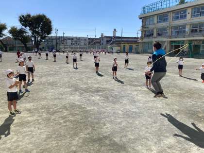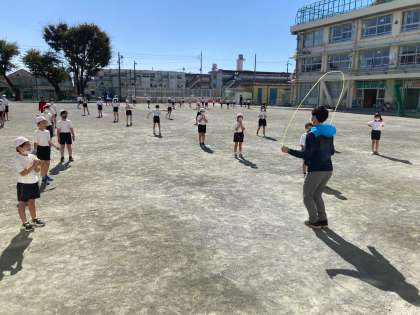 副校長先生が二重跳びのお手本を見せにきてくれました。