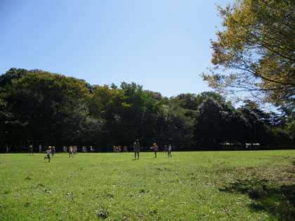 台風一過、抜けるような秋空の中で、一年生が砧公園に遠足に行きました。