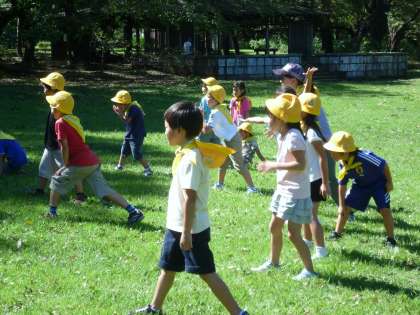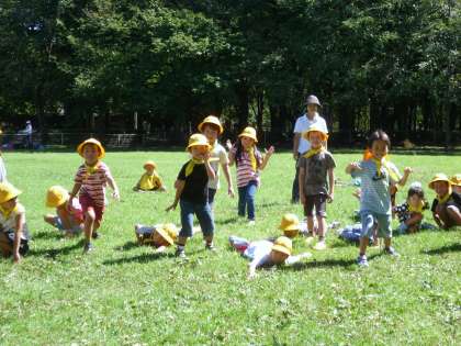 クラス遊びは先生と一緒。思いっきり走り回って楽しそうな子どもたちと、ちょっと苦しそうな先生・・・!