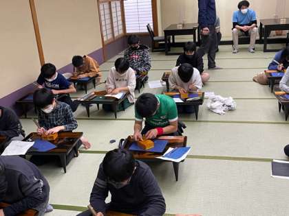 日光彫り体験。 皆さん芸術家、こだわりが感じられる。