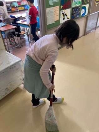 おしゃべりを我慢してお掃除をしようと、頑張っています。 きれいになると気持ちがいいですね!