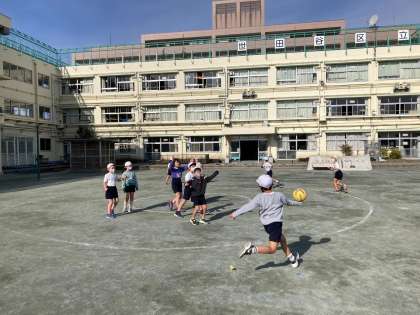 今までは同じクラスのチームと試合形式で練習して、アドバイスをし合っていました。そのアドバイスをいかして、隣のクラスと対戦!