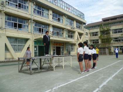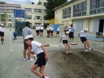 10月27日、6年生の連合運動会を目指しての練習ですが、お手伝いができる先生方も一緒に参加してくれています。