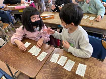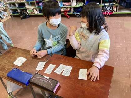 1/18_2年 ALT 公開日 2022/01/18 更新日 2022/01/18 今日のできごと 今回のテーマは『FOOD』 steak,spaghetti... 英語を聞き取って反応の速さを競ったり、カードを並べて場所を覚え、順番に言い当てたりと、ゲームを交えて楽しく学習しました。 iPhoneから送信