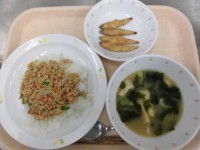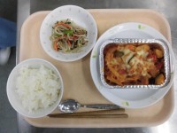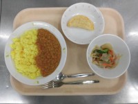 毎月19日は、食育の日です。食育の日には、「給食で世界を飛び回ろう!〜東京オリンピックに向けて、世界各国の料理に触れよう〜」ということで、いろいろな国の料理を出しています。そこでクイズです。今日の献立は、どこの国の料理でしょうか?
