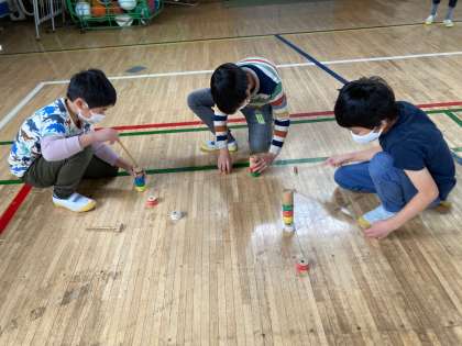 羽付き、だるま落とし、けん玉に分かれて挑戦しました。