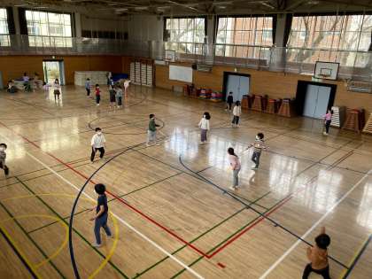 みんなで安全に遊ぶために、友達と接触しないような向きを考えて、広がって遊びました。