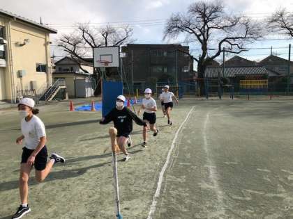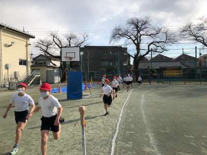 1/20 6年 体育「1km走」 公開日 2022/01/21 更新日 2022/01/21 学年 学年体育では、日頃の朝ランニングの成果を試すべく、1km走を行いました。自分の努力がどれだけ身についているのか、今後どう努力していくのかを考えました。駅伝大会も見据えながら、朝ランニングに取り組めるといいですね。