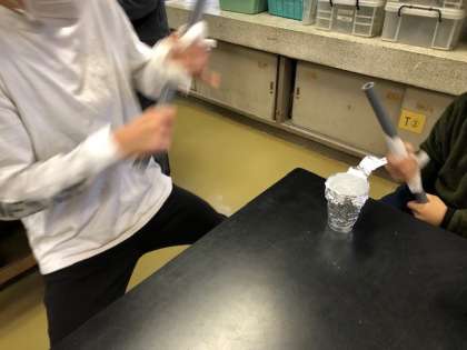 今日は静電気の実験その2でした。ライデン瓶を作って、電気を溜めて、触ってみるという活動です。