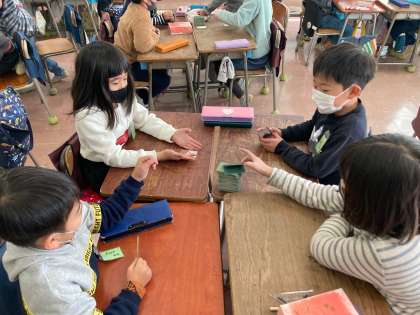 1/27 2年 生活科 昔遊び その6 公開日 2022/01/31 更新日 2022/01/31 今日のできごと ?百人一首を使って坊主めくりに挑戦しました。 坊主を引いて悲鳴が上がり、 姫を引いてまたまた悲鳴が上がる、、、大いに盛り上がりました。
