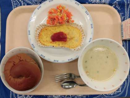 今日は、「にんじんとツナのサラダ」に使った、「にんじん」のクイズを出したいと思います。「にんじん」がもとになって名前がつけられた栄養素があります。さて、その栄養素とは、次のうちどれでしょうか?