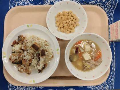 今日の給食は、節分献立です。そこで今日は、「節分」のクイズを出したいと思います。節分の日には、ある魚の頭をひいらぎの枝にさして、家の入り口に飾ります。さて、その魚とは次のうちのどれでしょうか?
