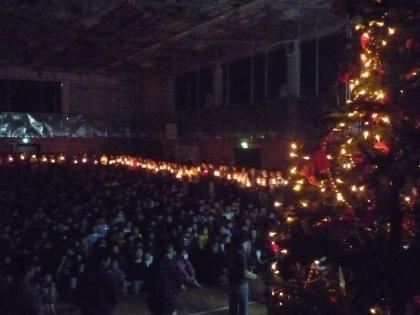 12/19 もみの木集会は6年生のキャンドルサービス 公開日 2008/12/19 更新日 2008/12/19 校長室より 毎年恒例の「もみの木集会」は、6年生のキャンドルサービスがとてもきれいなのです。 6年生の手持ちのキャンドルに灯がともると、体育館が素敵な会場に変身します。 ほのかな明かりの中で、子どもたちがより一層輝いて見えました。