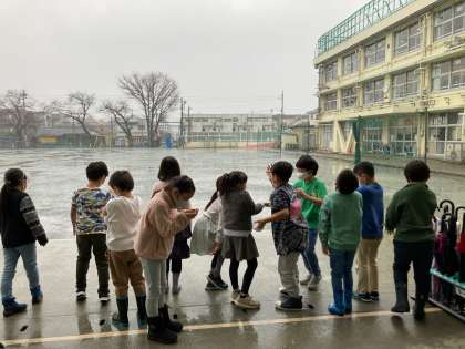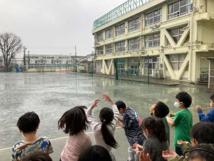 靴箱まで出て、実際に雪を触った後すぐに、目で見たこと、心で感じたことを詩に表しました。