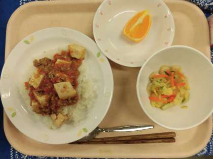 2/14 本日の給食 公開日 2022/02/14 更新日 2022/02/14 給食 〜今日の献立〜 麻婆豆腐丼 牛乳 辣白菜 くだもの(スイートスプリング) 〜給食メモ〜 今日の給食は、中華料理の「麻婆豆腐丼」です。そこでクイズです。麻婆豆腐は、中国のどの地方の料理でしょうか? 1. 北京 2. 四川 3. 上海 ※クイズのこたえは、「食材がとれたところ…」の最後にのせています。 食材がとれたところ・・・ 閉じる 食材がとれたところ… 米…埼玉県 豚肉…神奈川県 にんにく…青森県 しょうが…高知県 たまねぎ…北海道 にんじん…千葉県 ねぎ…千葉県 白菜…群馬県 きゅうり…群馬県 スイートスプリング…熊本県 クイズのこたえは、2の「四川」です。四川料理は、辛いのが特徴で、他にはエビチリなどの料理があります。また、1の北京料理は塩辛い、3の上海料理は甘味が強いのが特徴だそうです。 今日も、残さず食べましょう。