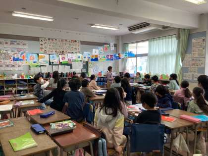 グループごとにどんなことを発見したか発表するときは、発表者におへそを向けてお話を聞くことができました。