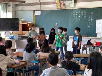 あやとりでは大きい東京タワーも披露しました。お手玉も投げ方や取り方、そしていろいろな楽しみ方を紹介してくれました。